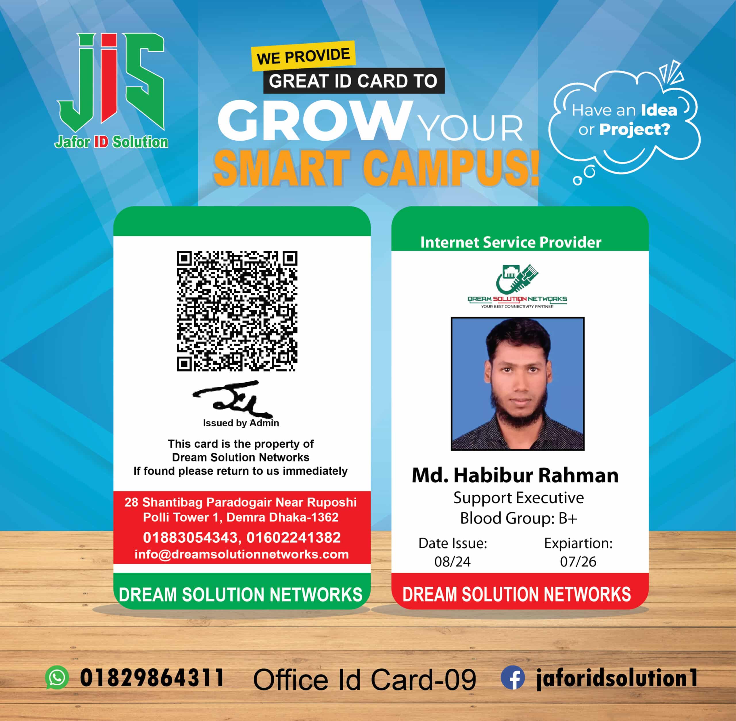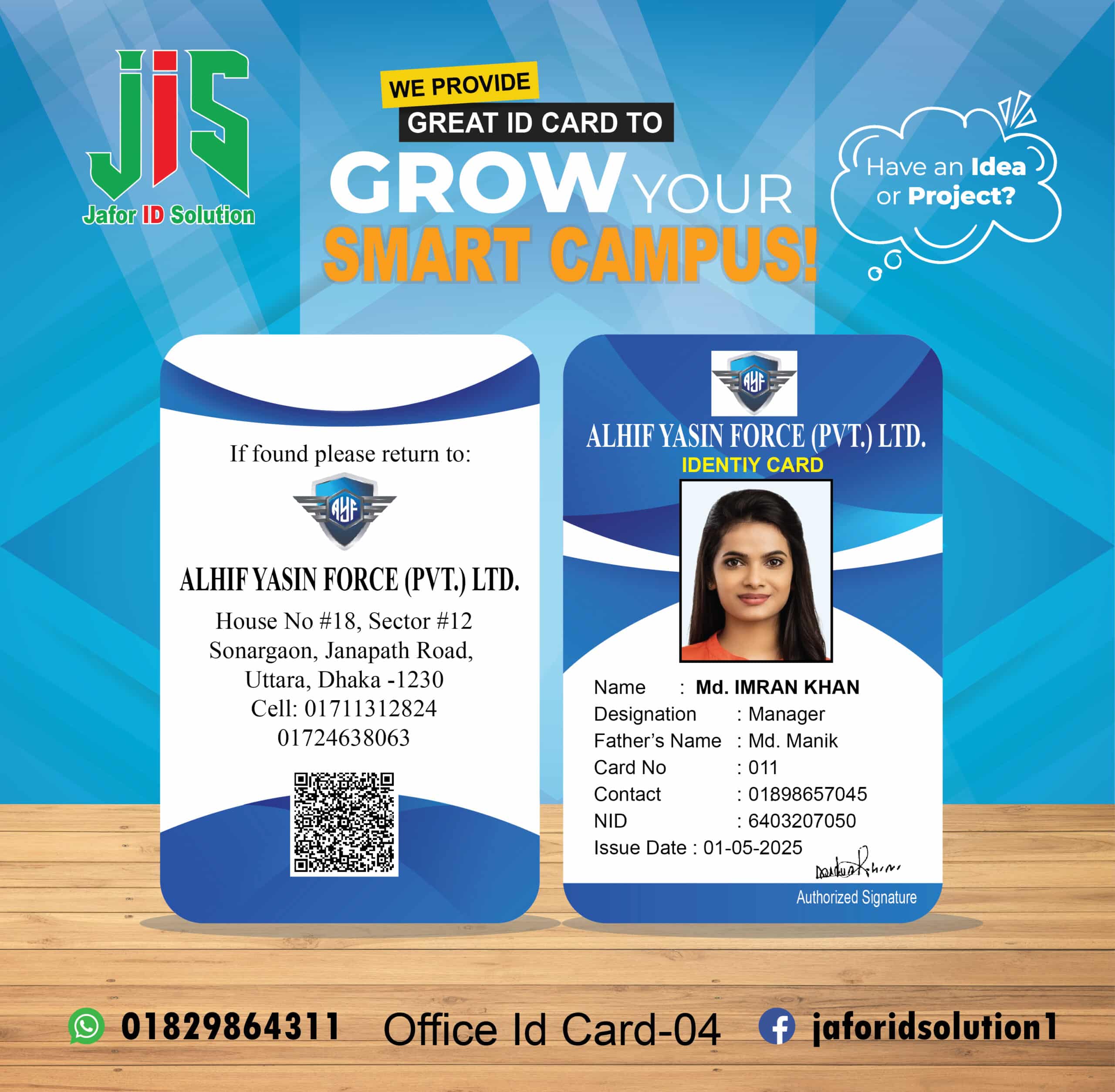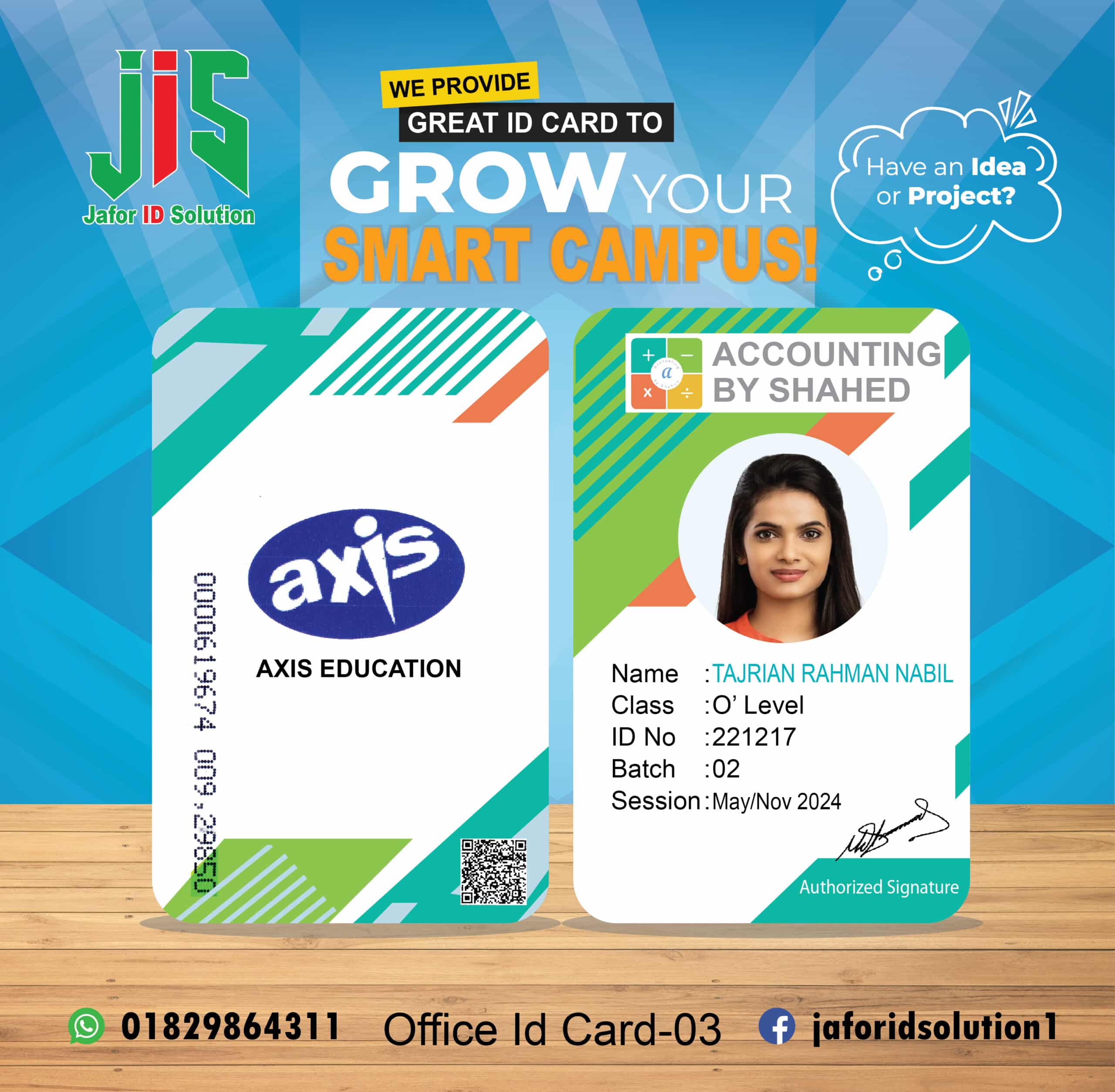 আপনার স্কুল, কলেজ, মাদ্রাসা বা প্রতিষ্ঠানের জন্য স্টাইলিশ এবং নিরাপদ আইডি কার্ড তৈরি করতে আমরা আছি আপনার পাশে!